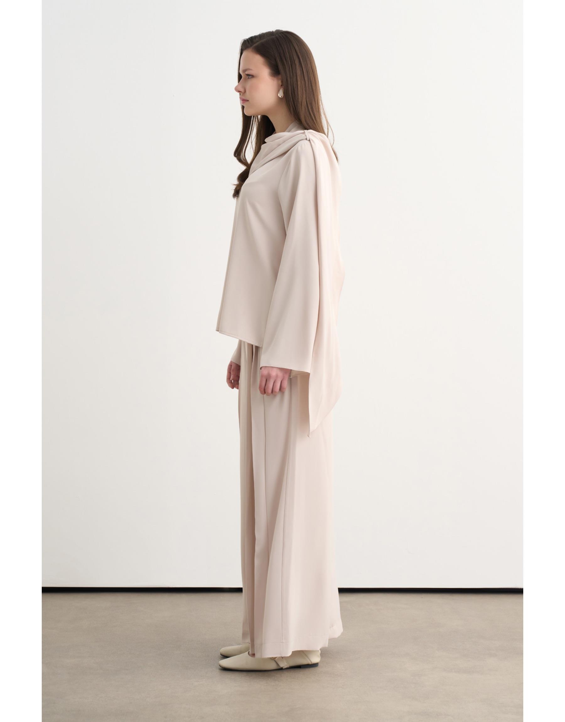 Pantolonun lastikli beli kullanım kolaylığı sağlarken, vücuda dengeli oturan formuyla şık bir görünüm sunar. Hem günlük kombinlerde hem de daha özenli görünümlerde rahatlıkla tercih edilebilir.