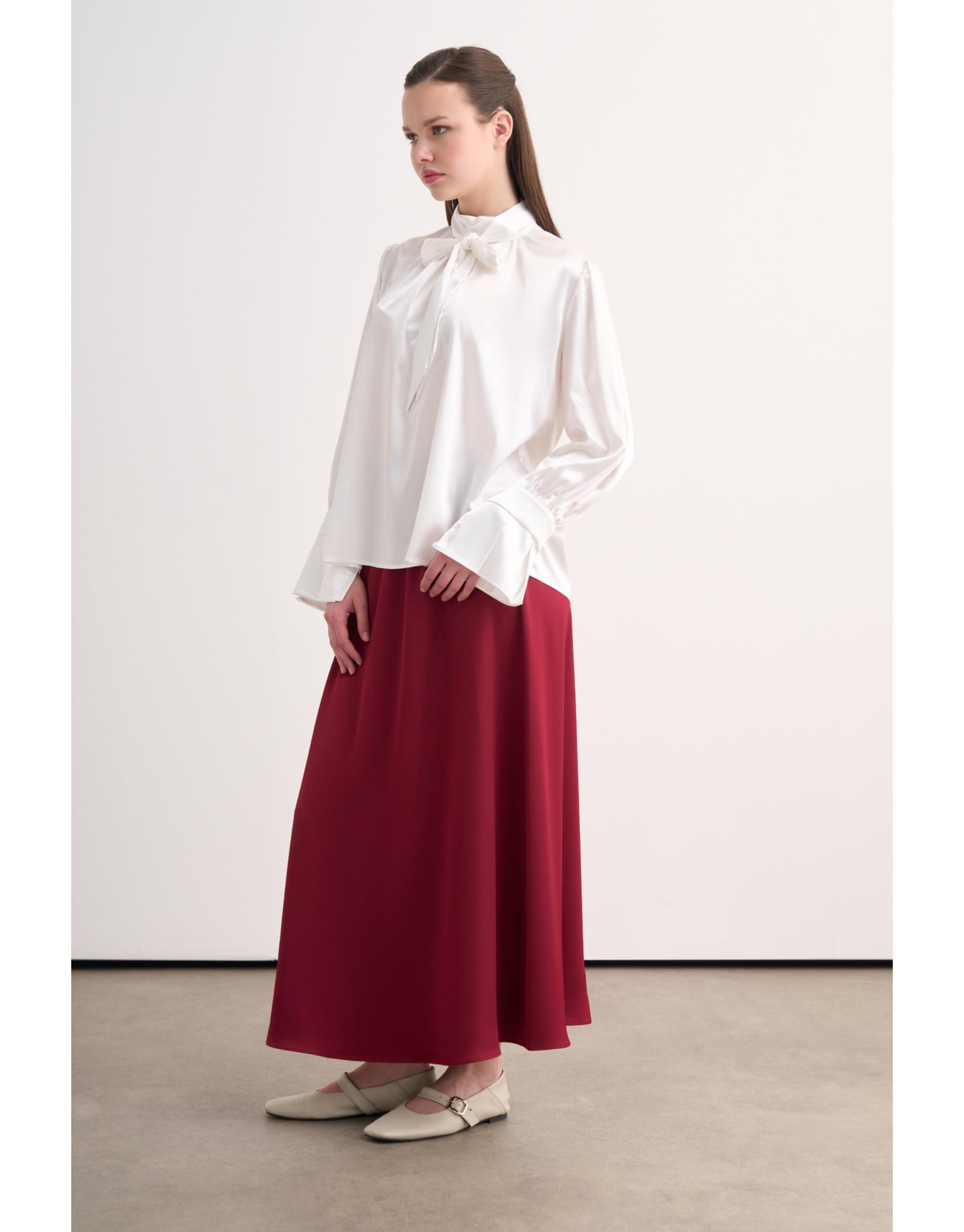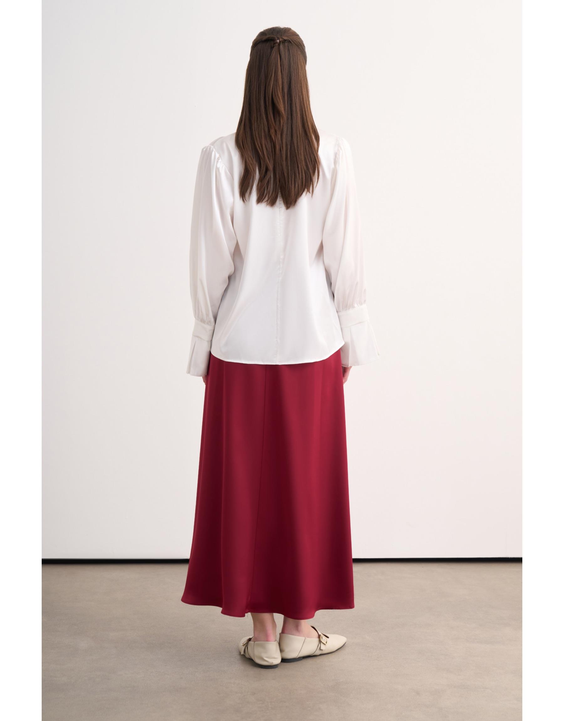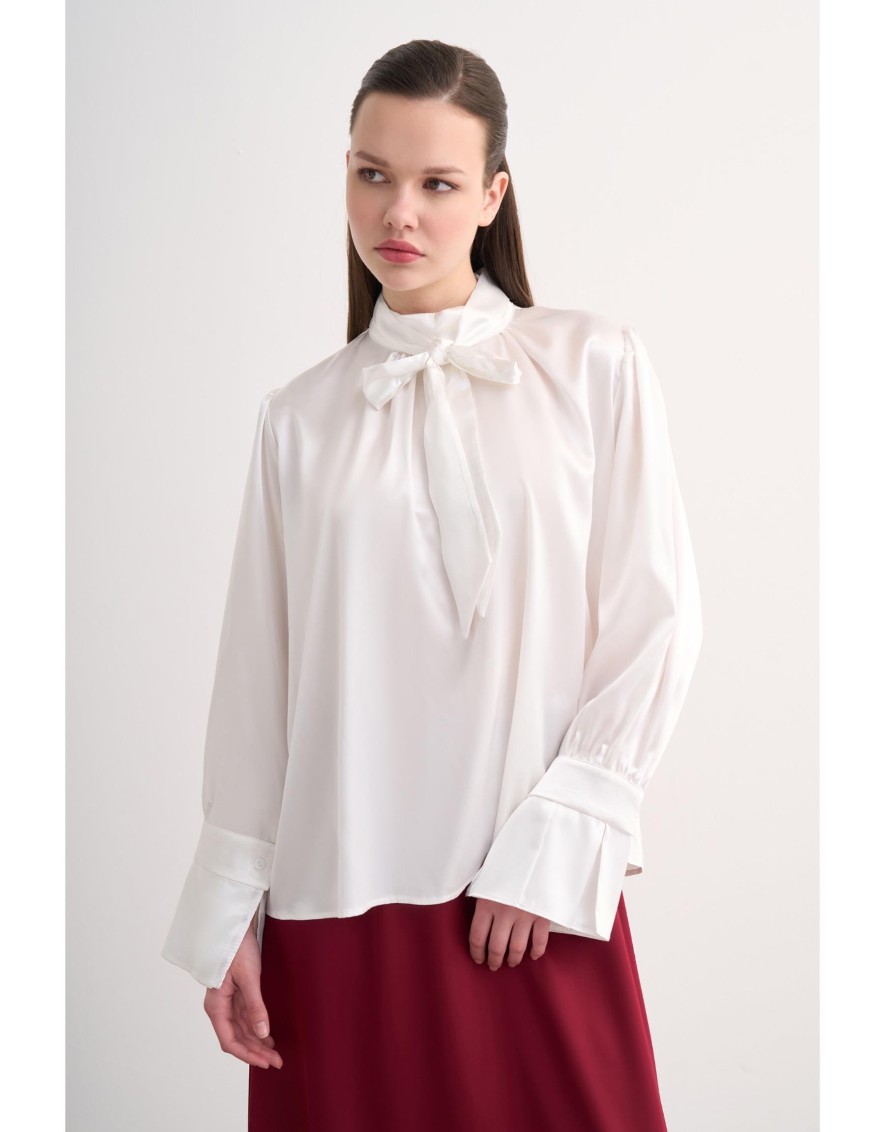 Saten kumaşın pürüzsüz ve akışkan yüzeyiyle tasarlanan bu gömlek, net ve rafine bir görünüm sunar. Hafif parlak dokusu ışığı dengeli şekilde yansıtarak güçlü bir duruş oluştururken, konforlu kesimi gün boyu rahatlık sağlar.