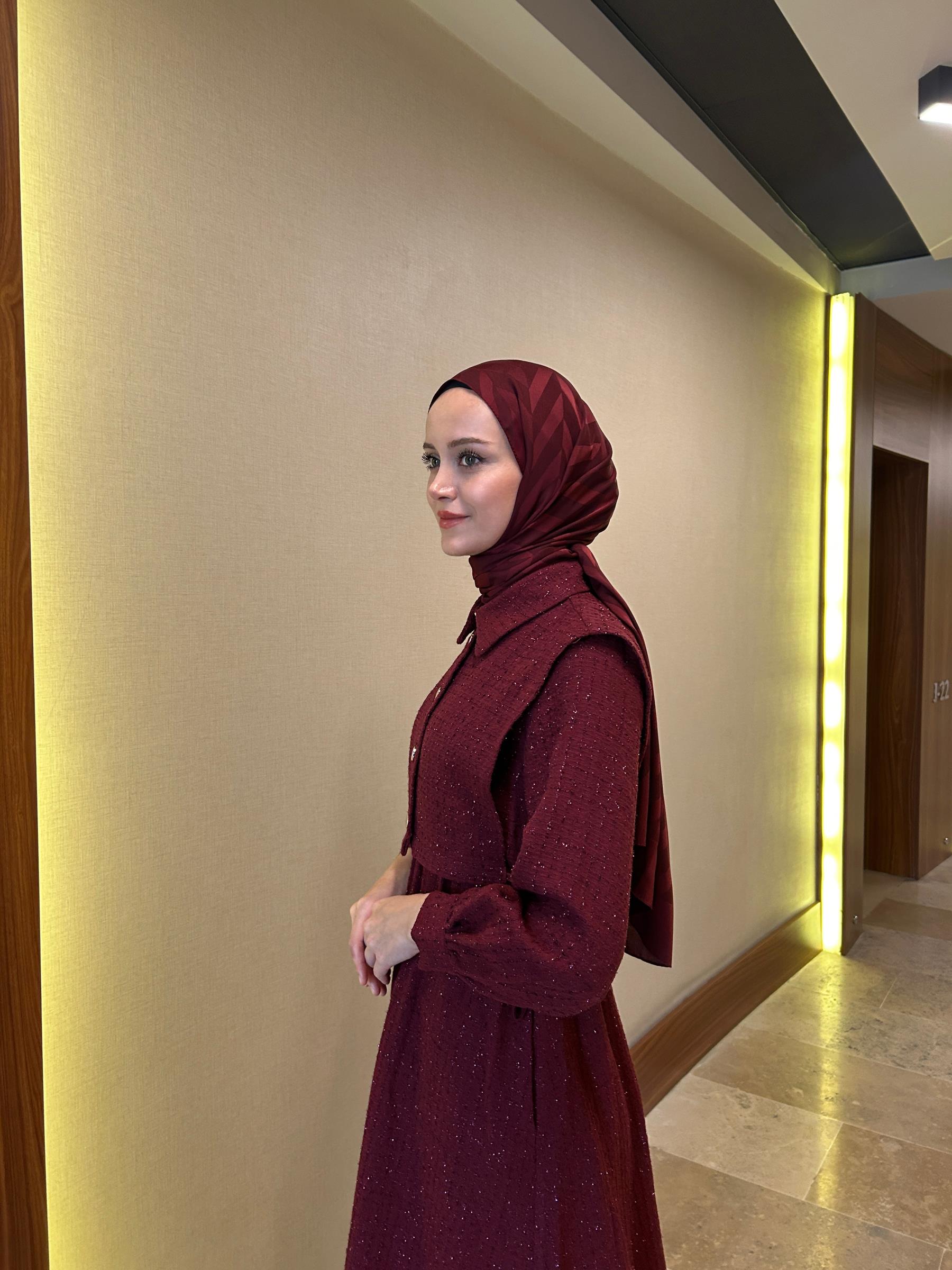 -Yelek boy 42 cm, elbise boy 130 cm, kol boy 57 cm, göğüs 82 cm, bel 70 cm, basen 114 cm'dir.