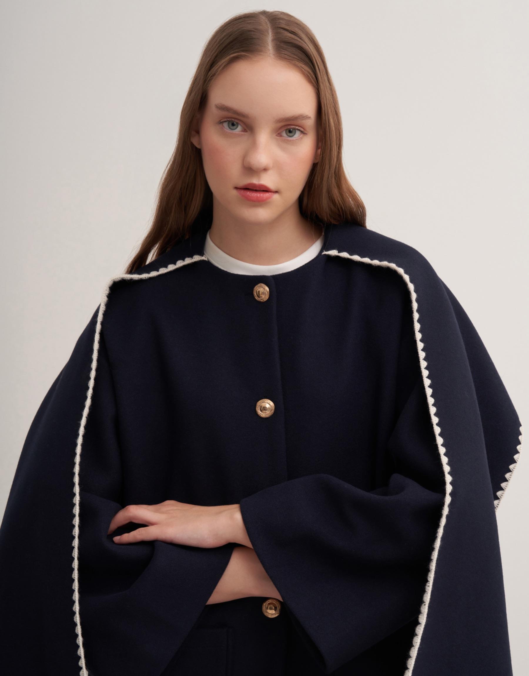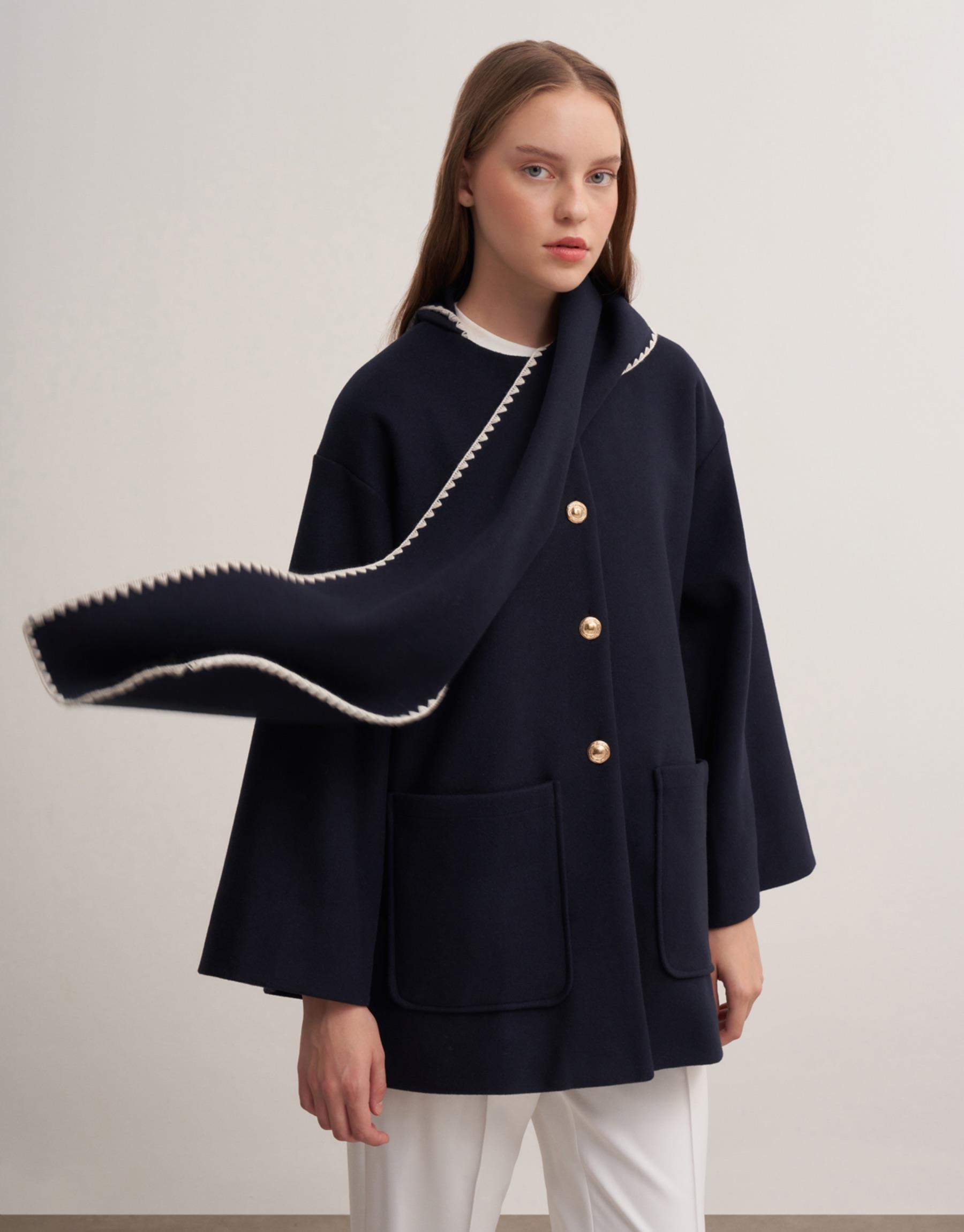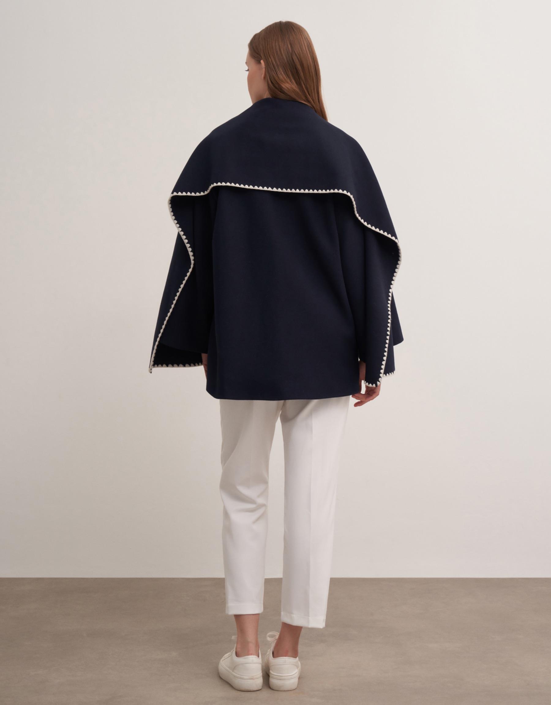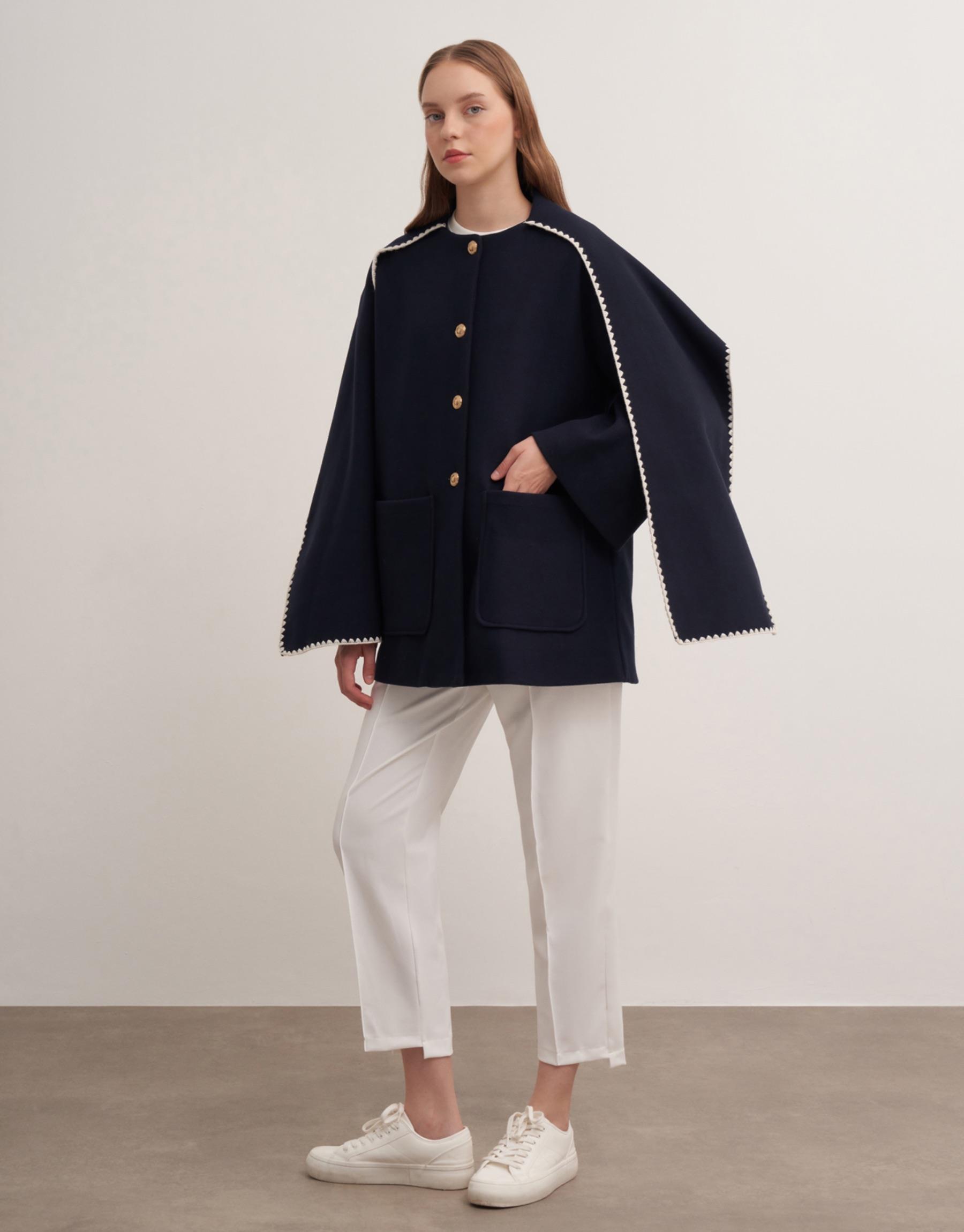 Pelerin detaylı ön cepli çoban dikişli ceket. Ceket boy 80cm göğüs ölçüsü 60cmdir.