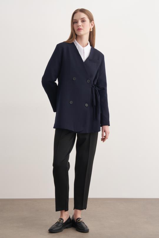 Yan Bağlamalı Ceket Lacivert