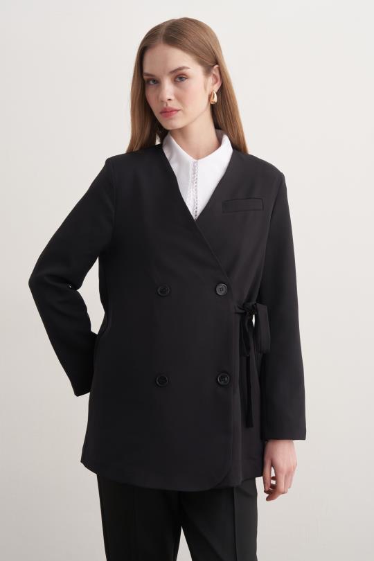 Yan Bağlamalı Ceket Siyah
