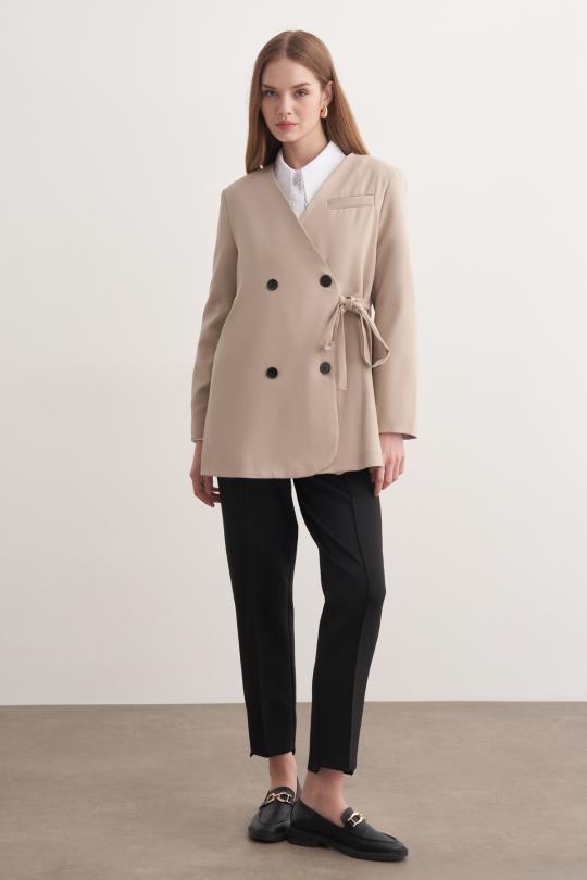 Yan Bağlamalı Ceket Bej