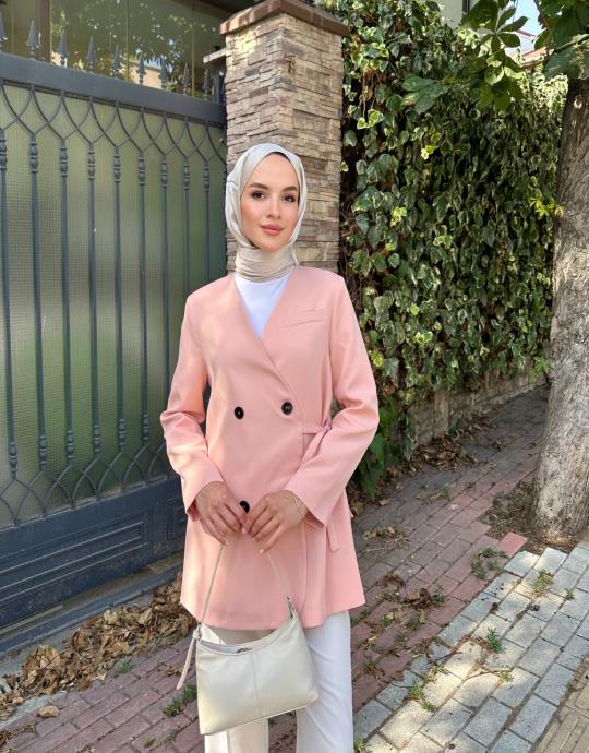 Yan Bağlamalı Ceket Somon