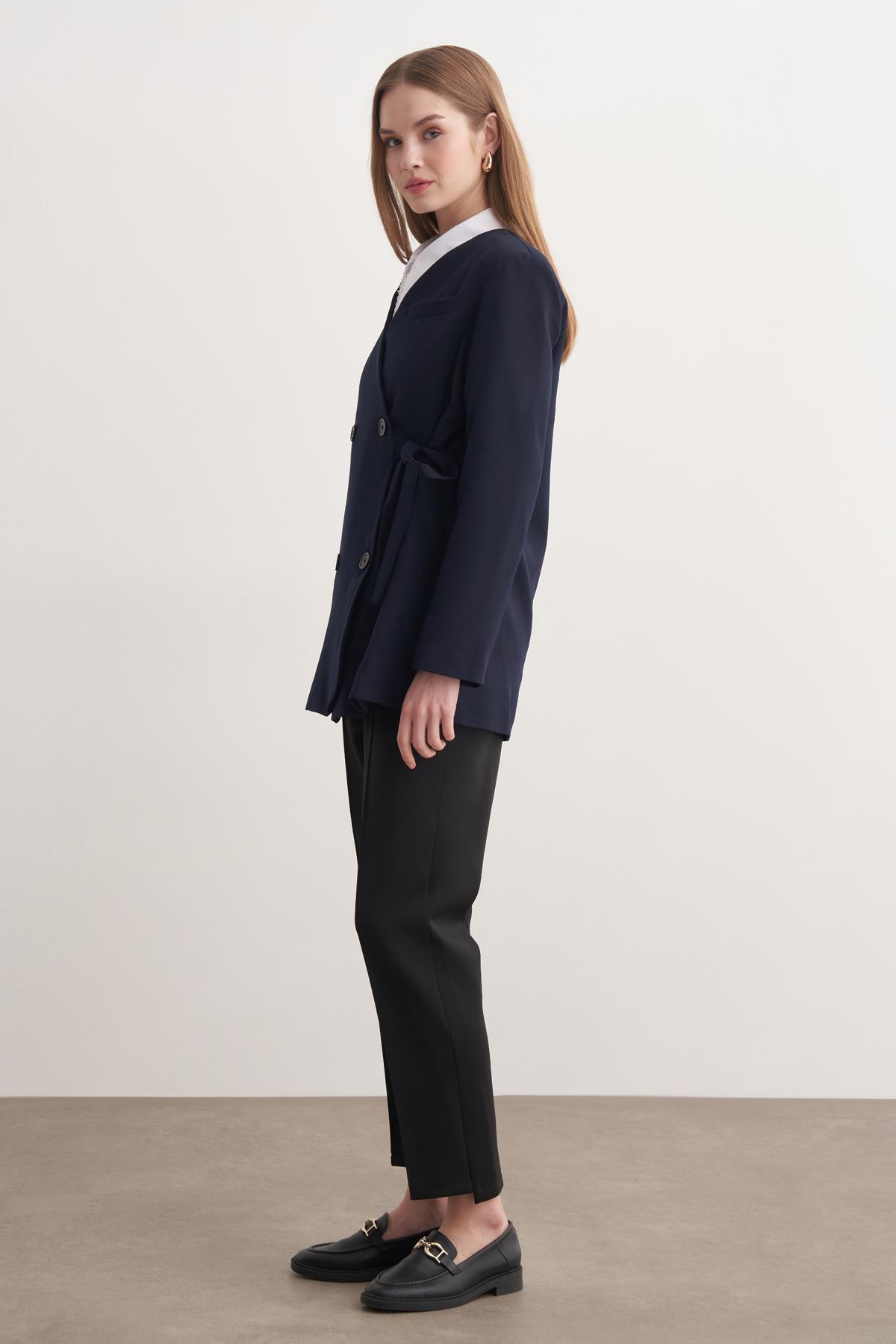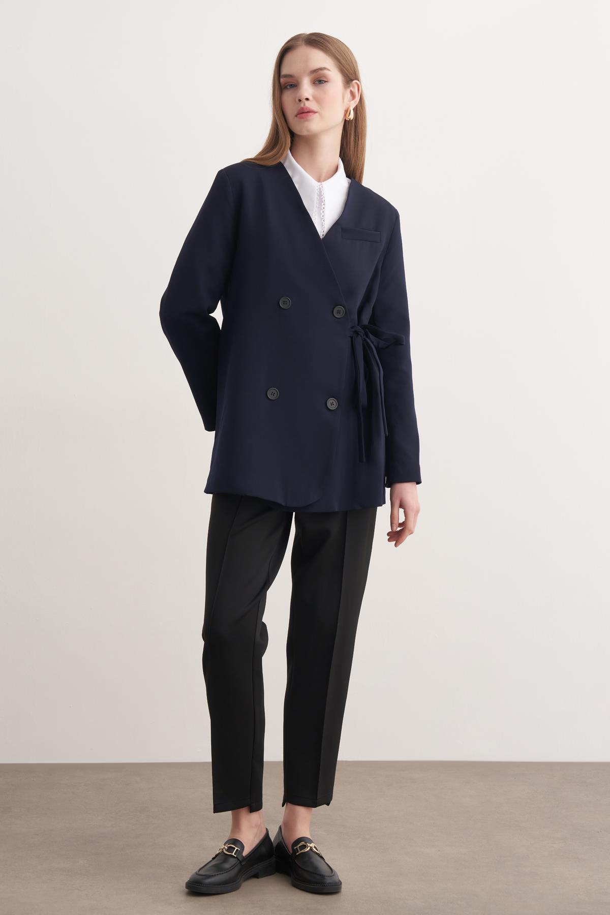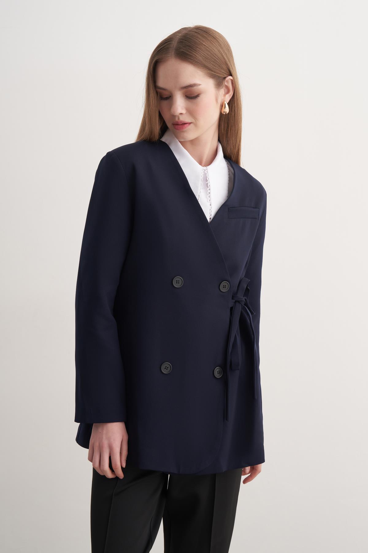 Ceketimiz dauble krep kumaş olup içten düğmeli ve yandan bağlamalıdır.