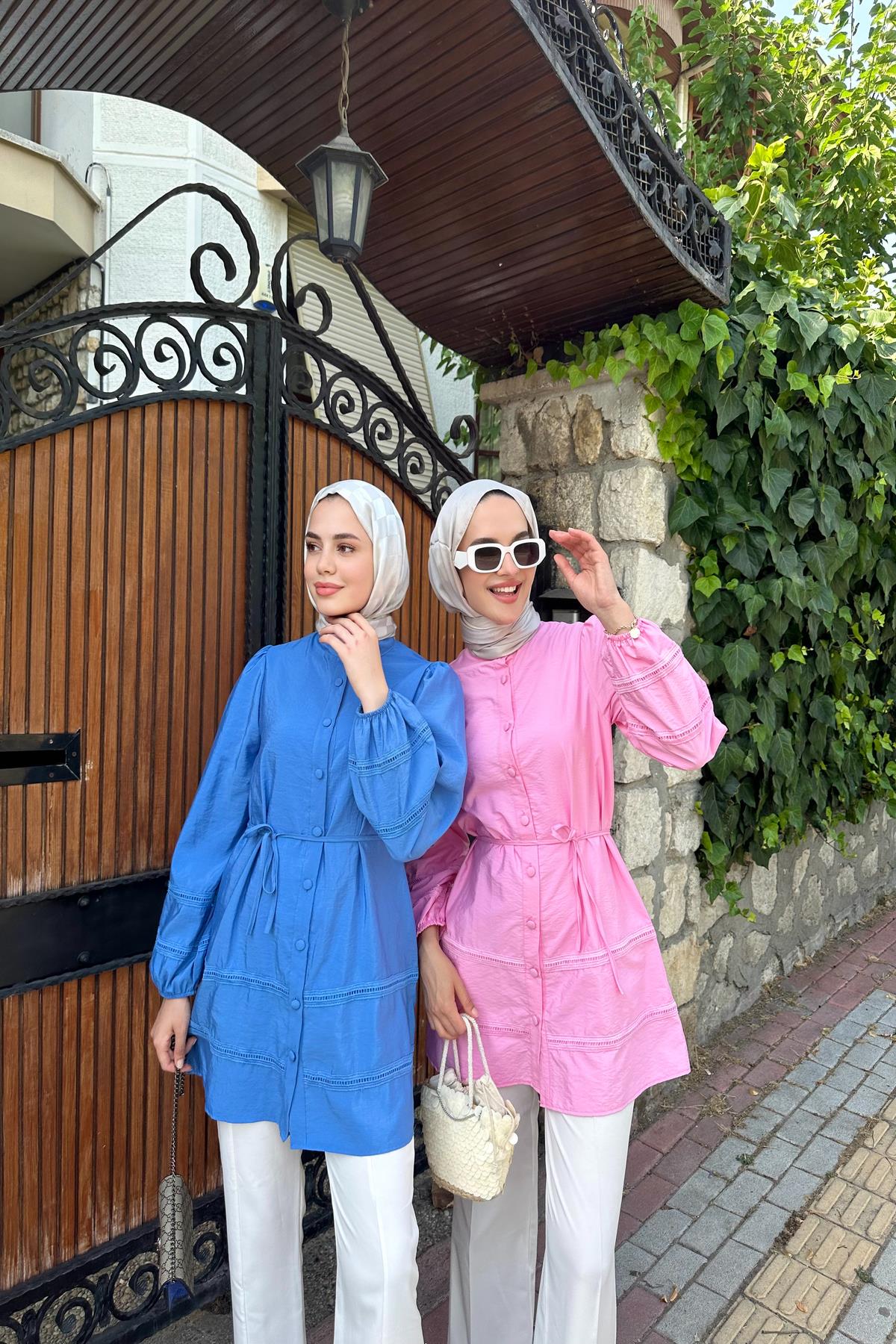 Tuniğimiz, brode detaylı, bilekleri lastikli balon kollu sedef kumaş tunik.