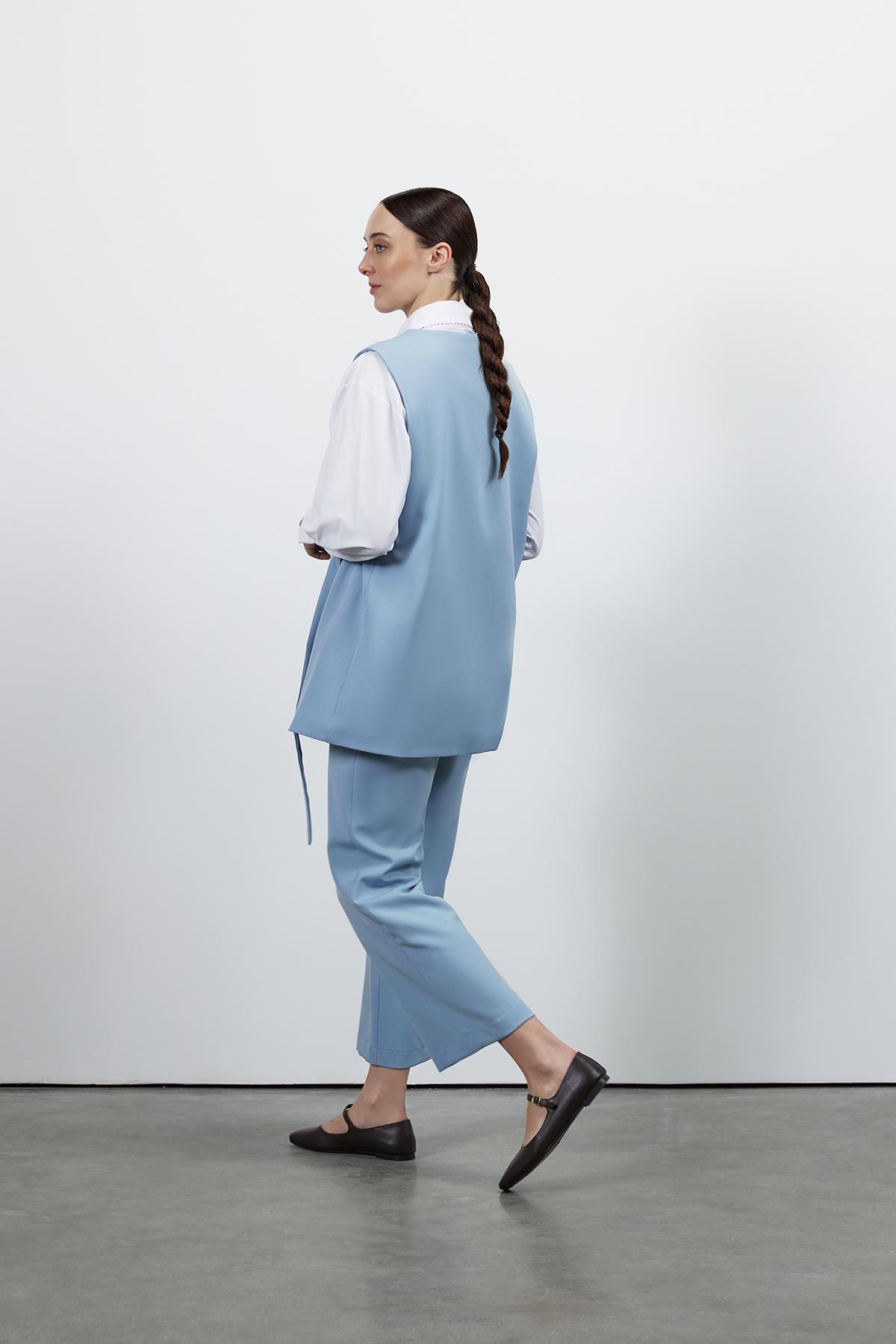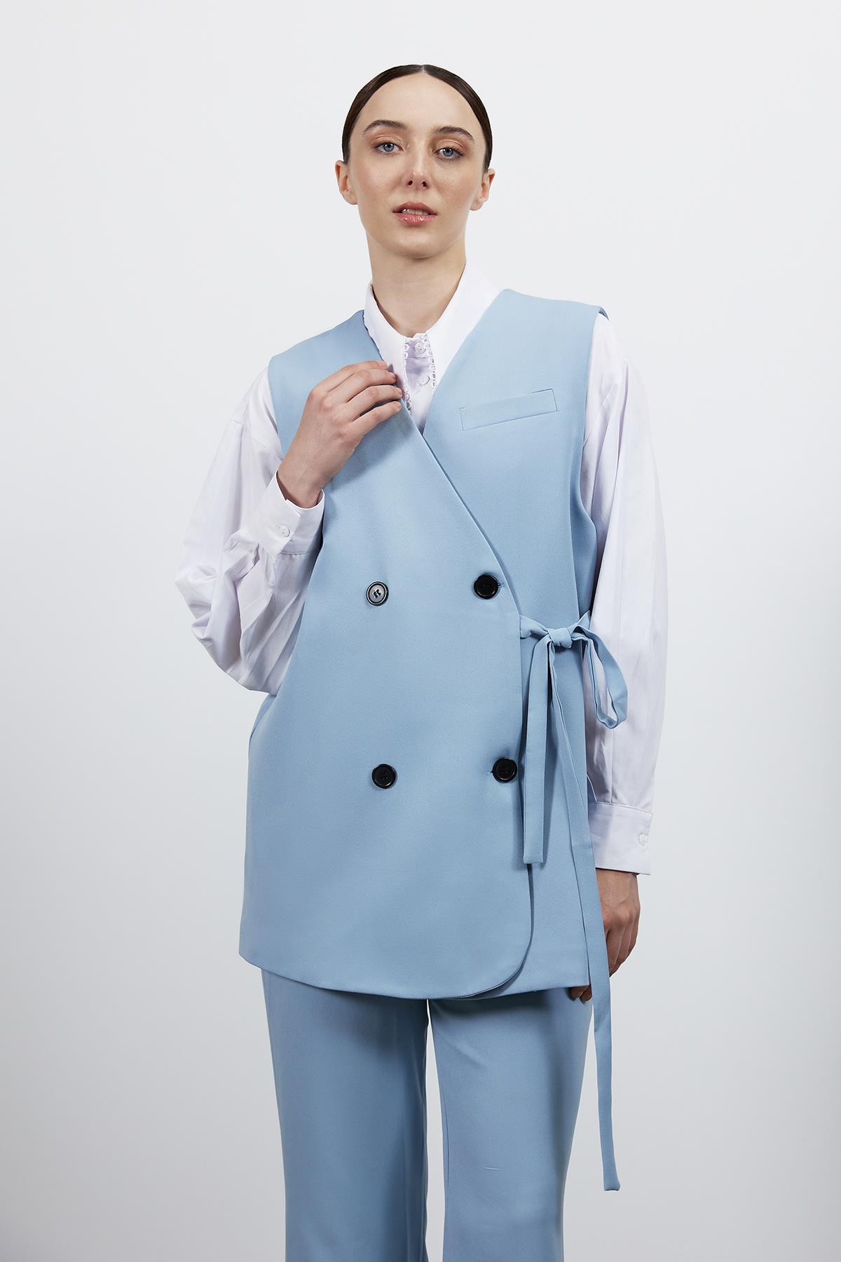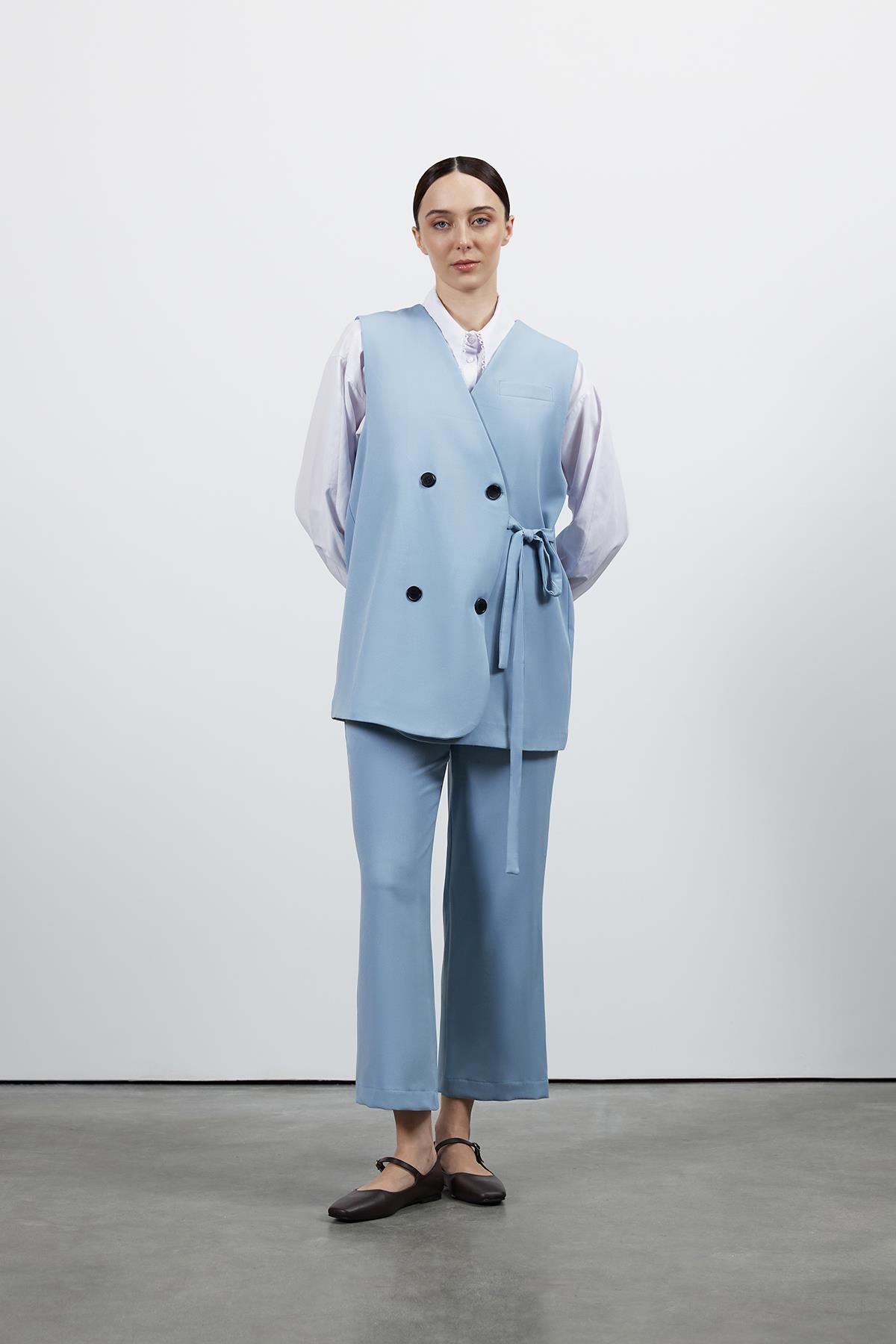 Önü düğme ve bağlama detaylı pantolonlu takım