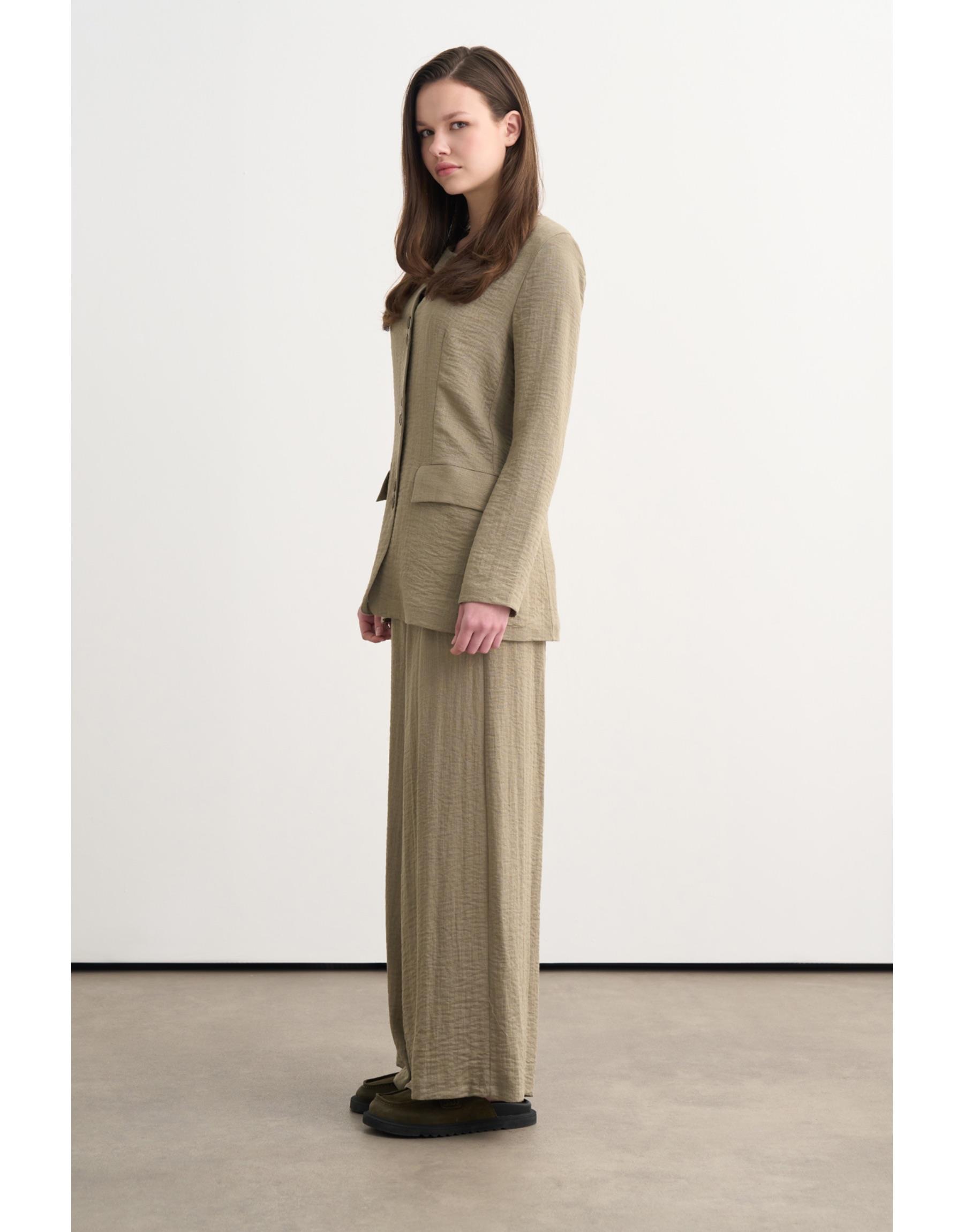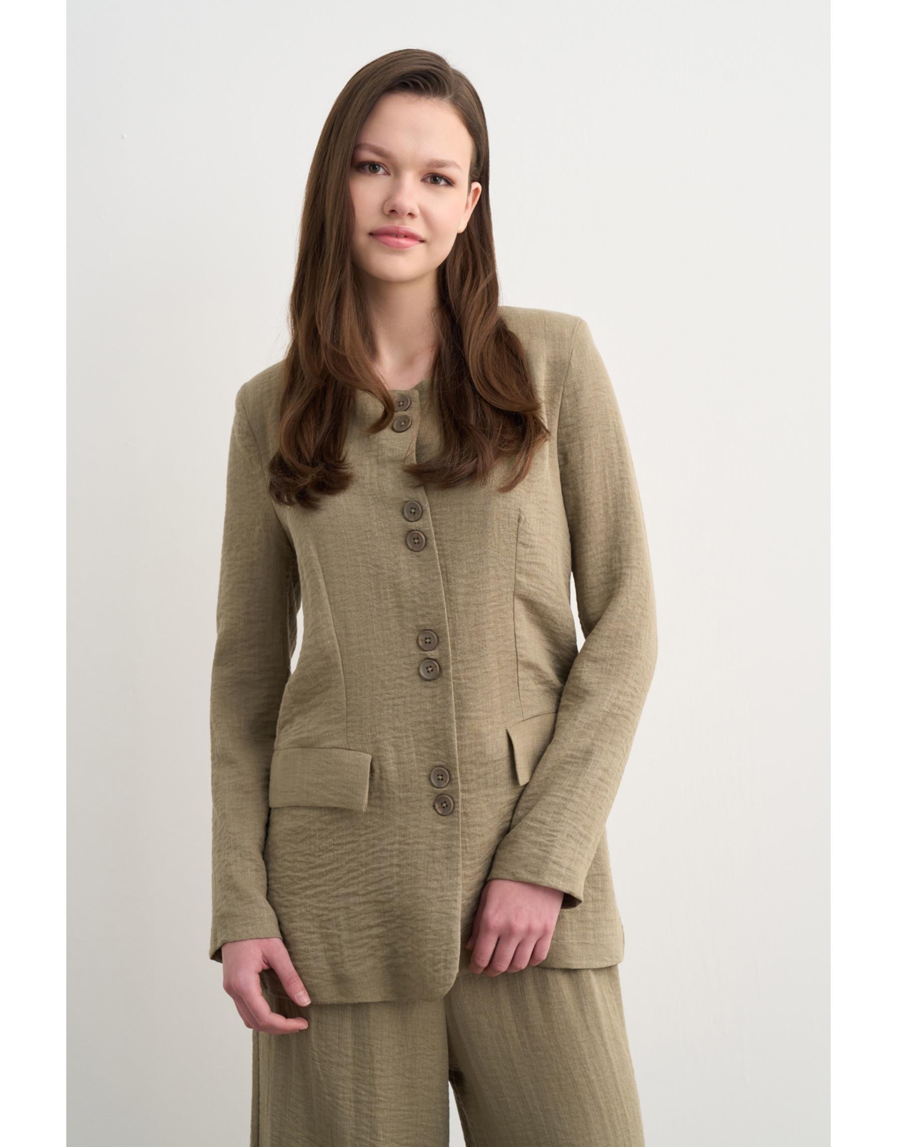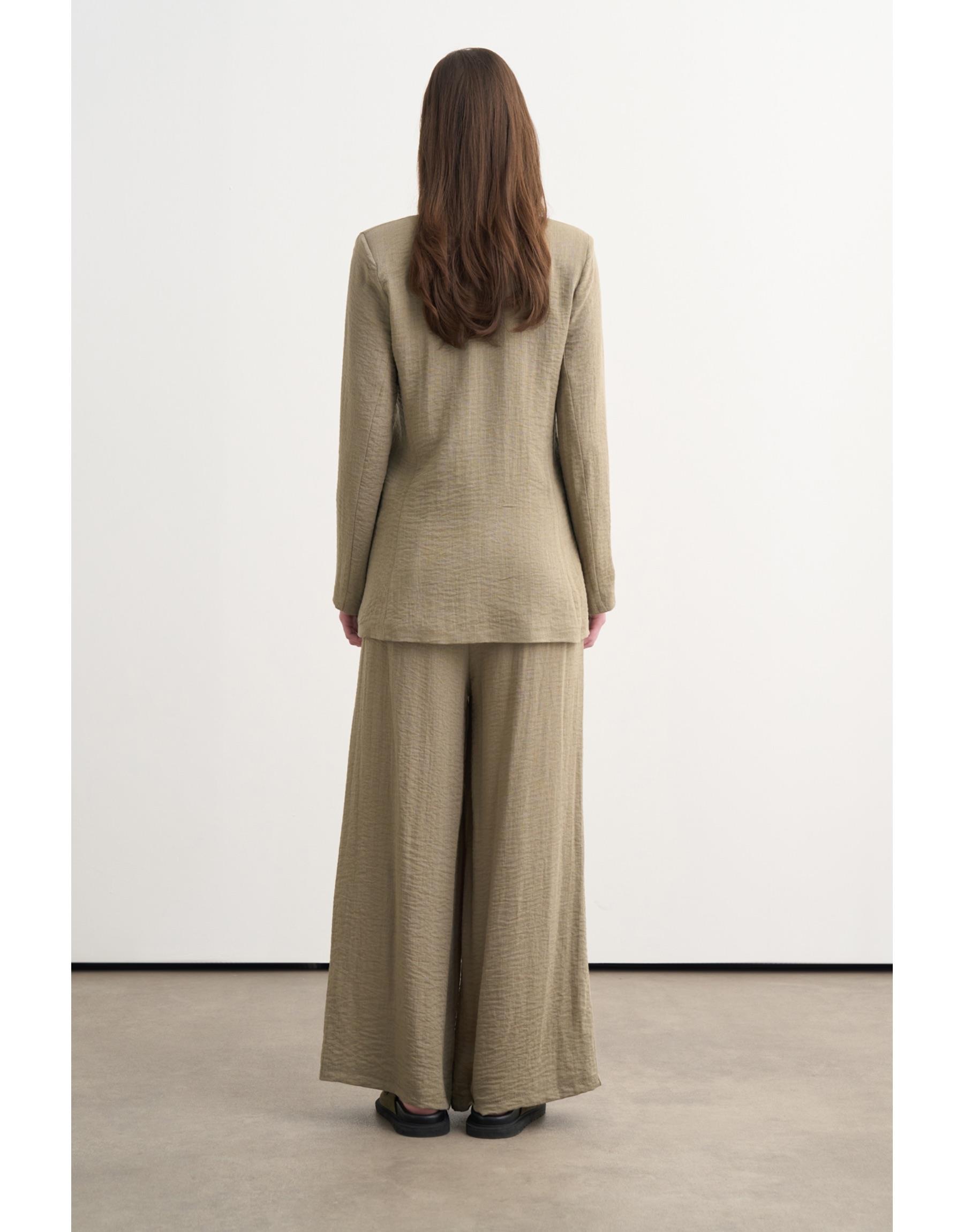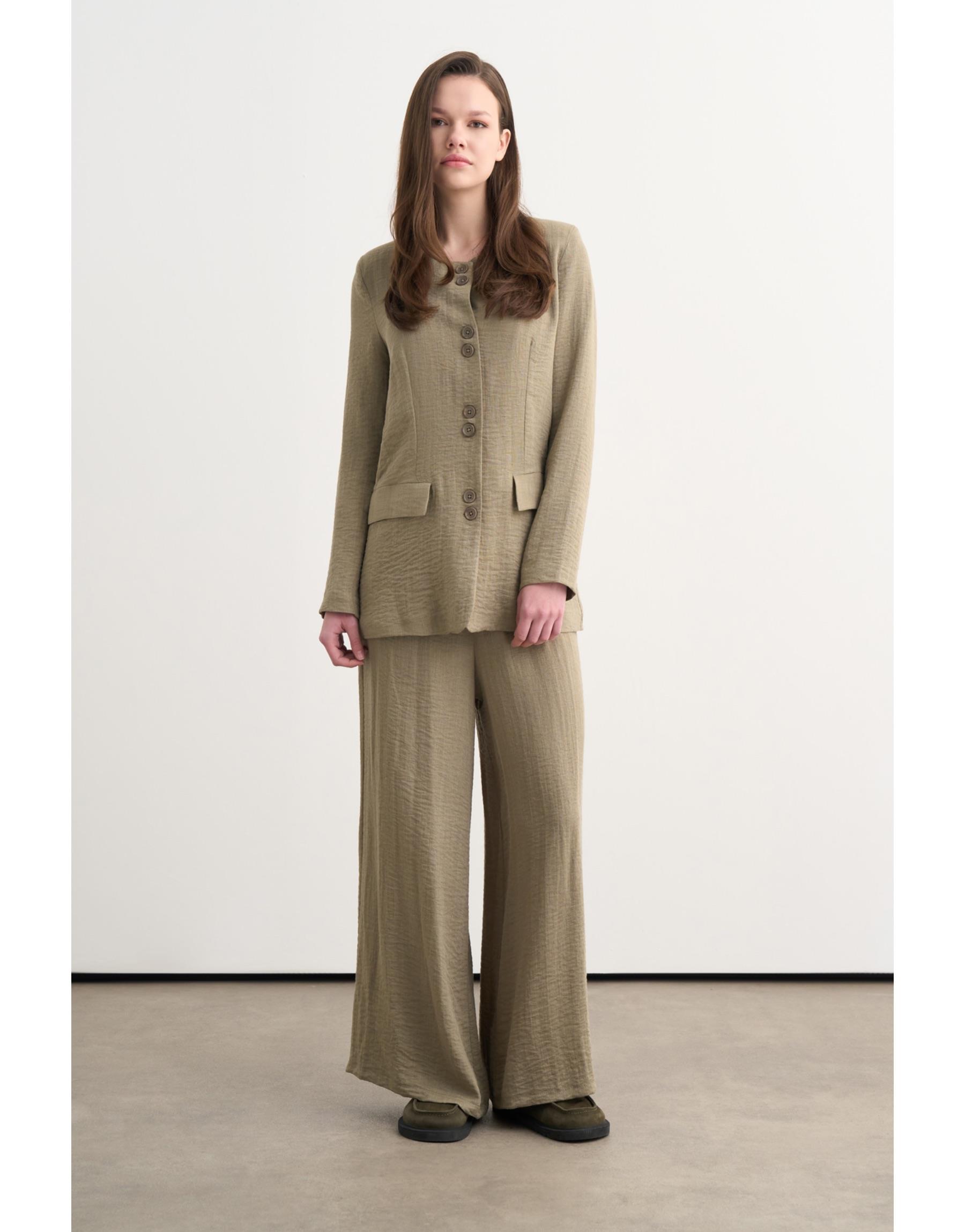 Keten kumaşın doğal dokusuyla tasarlanan bu ceket pantolon takım, net ve dengeli bir siluet sunar. Hafif yapısı sayesinde gün boyu konfor sağlarken, sade çizgisiyle güçlü bir görünüm oluşturur.