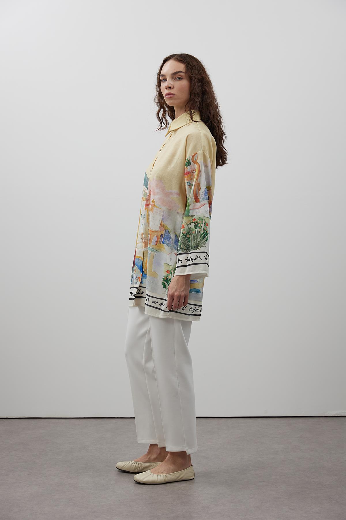 Gömlek: Ürün boyu 79 cm, göğüs 106 cm, omuz 90 cm, kol 46 cm'dir.