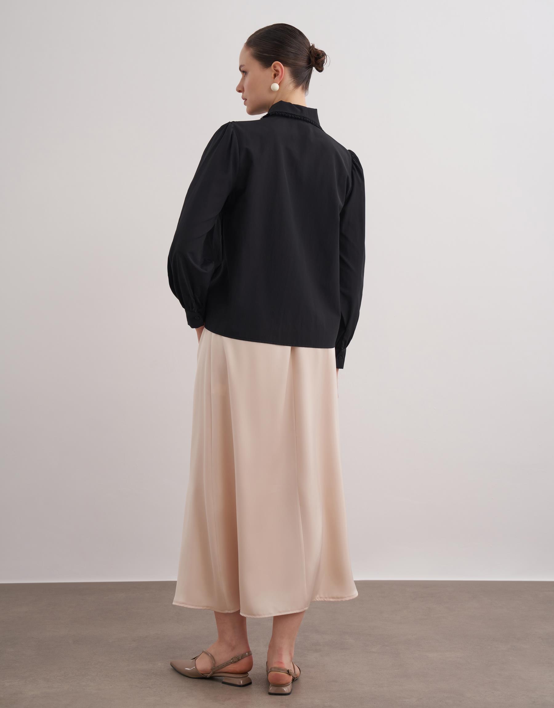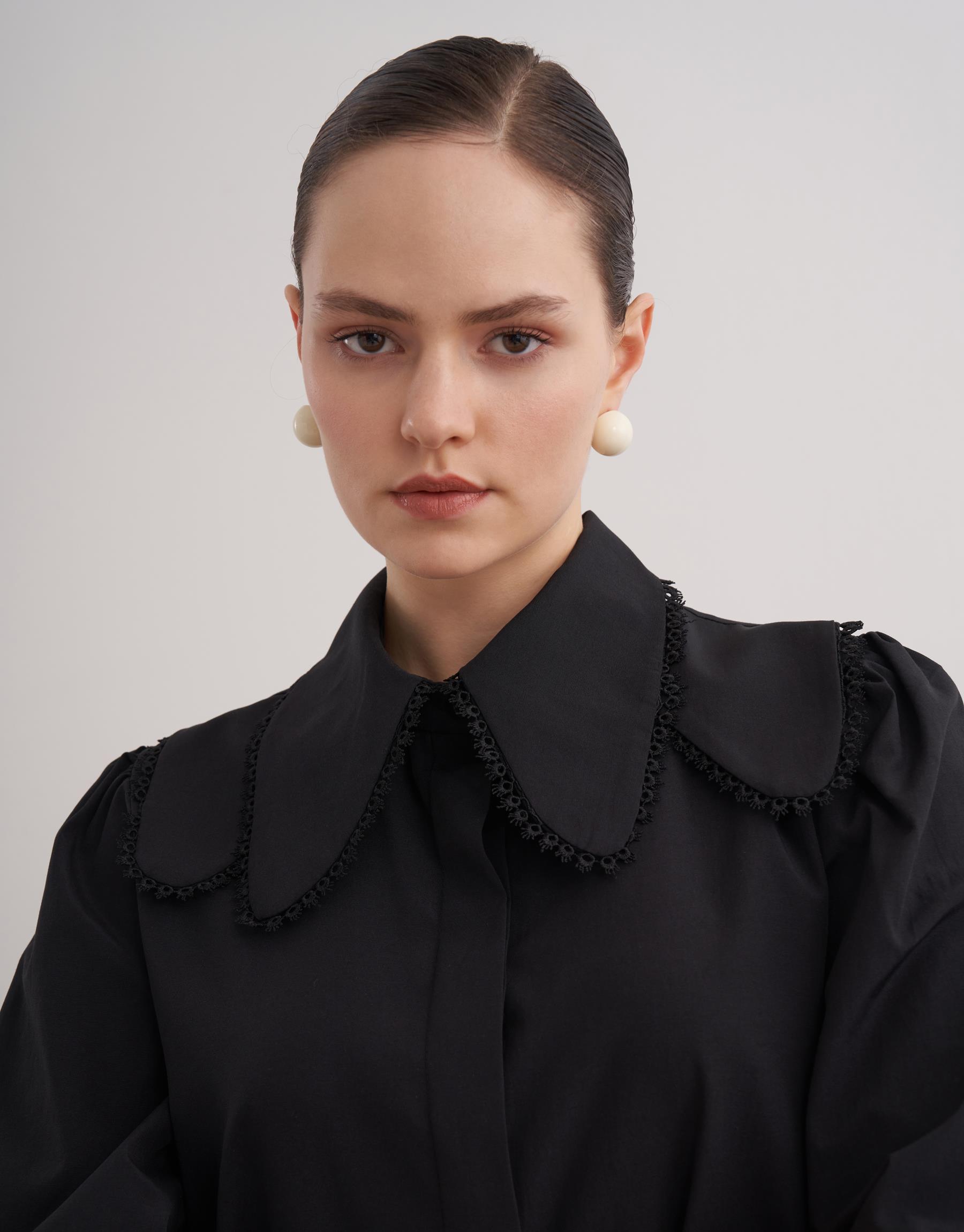 Dantel detaylı trençkoton gömlek.